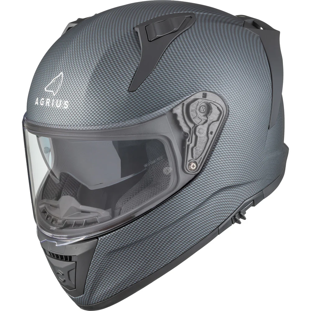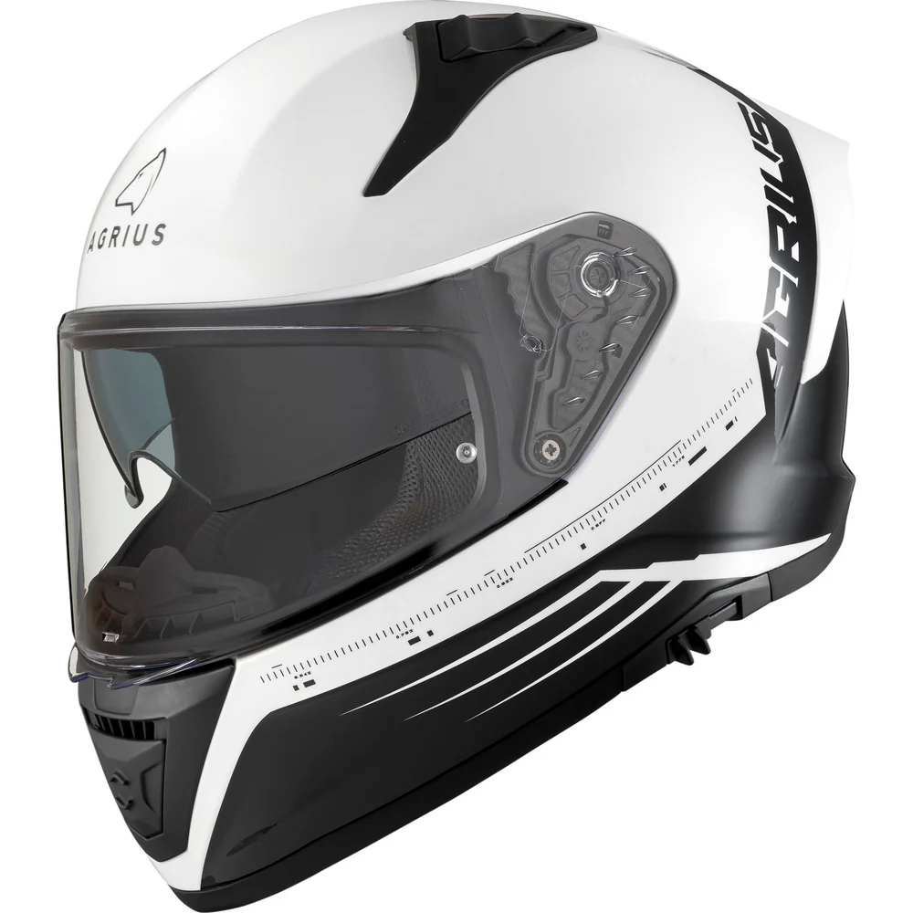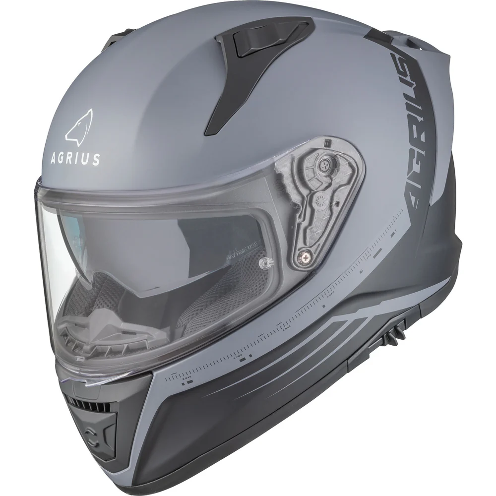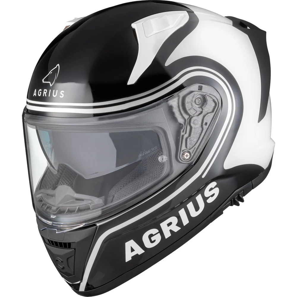 - Aerodynamic Full Face Sports Design With Spoiler – The Agrius Storm’s sleek lines and sharp detailing are more than eye-catching; they’re a statement of your passion for the road. Its angular rear spoiler finishes the look and assists with airflow over the surface of the helmet.