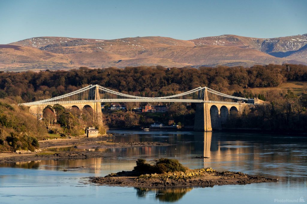 The Menai Bridge is a suspension bridge spanning the Menai Strait between the island of Anglesey and the mainland of Wales. Designed by Thomas Telford and completed in 1826, it was the world’s first major suspension bridge. The bridge still carries road traffic and is a Grade 1 listed structure.