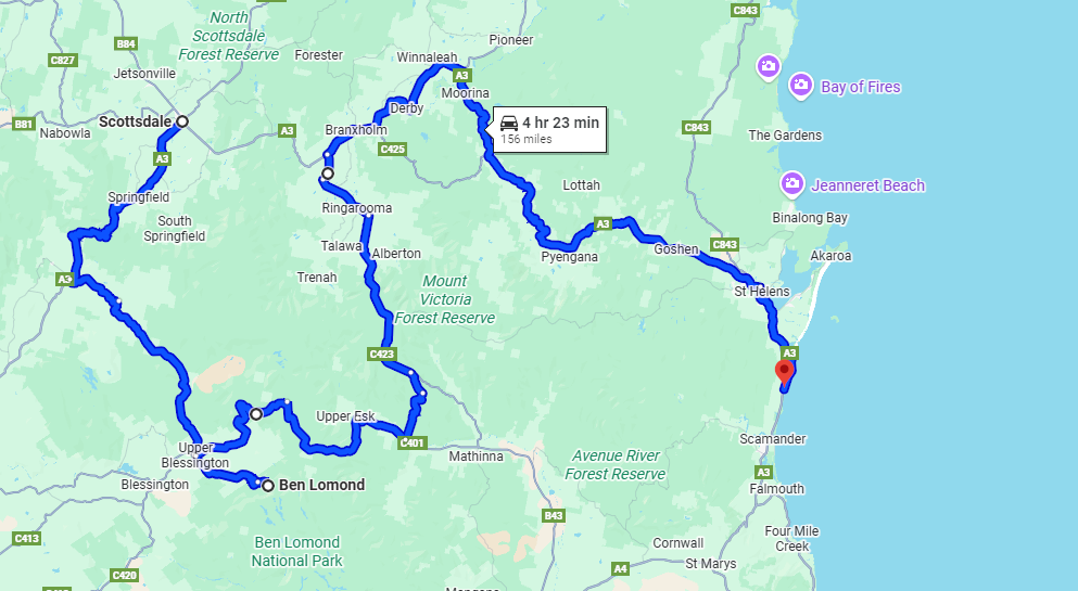 Located southeast of Launceston, the route takes you through Ben Lomond National Park and stunning forests. The road is gravel but firm and easy to ride. In winter, though, it can become impassable, with signs warning that snow chains are required between June and September.