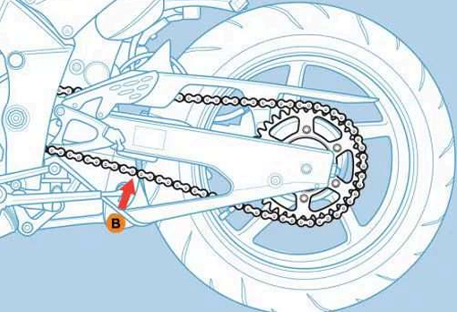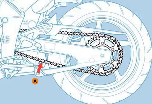 Check the manual – the owners manual specifies the required slack for the chain and whether it should be checked with the bike on it’s side stand or elevated with a stand.