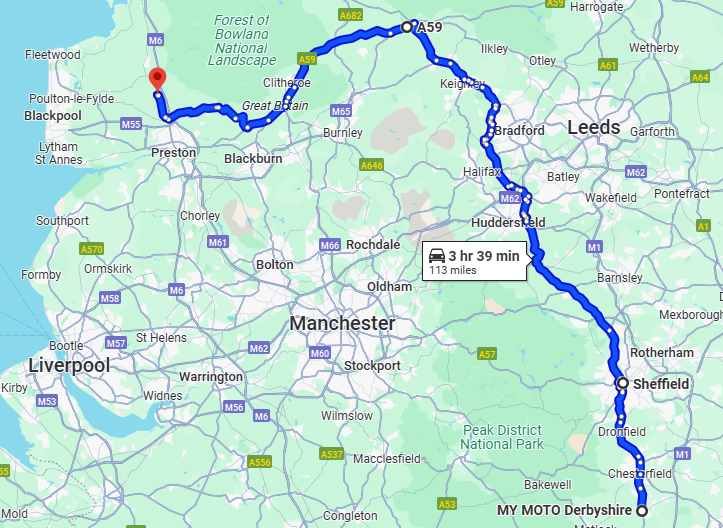 - A61 to Chesterfield, then Sheffield