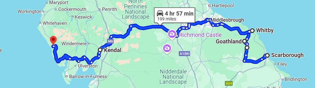 - End: Scarborough or Ravenglass