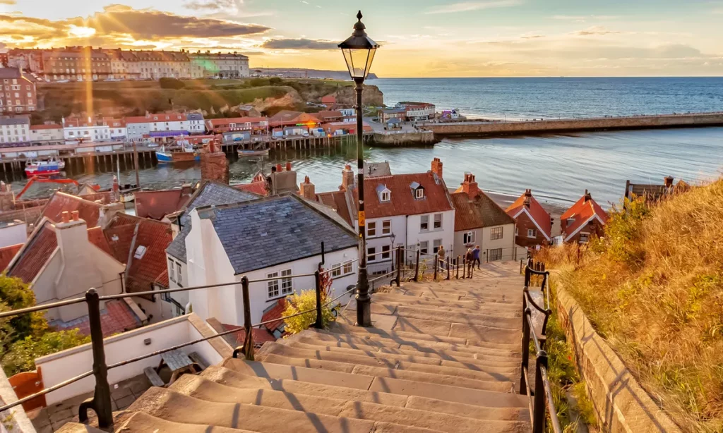 Whitby is a seaside town, port and civil parish in North Yorkshire, England. It is on the Yorkshire Coast at the mouth of the River Esk and has a maritime, mineral and tourist economy.