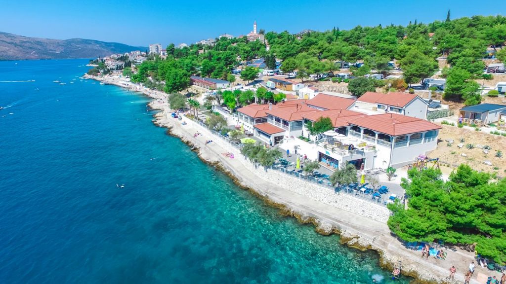 Seget Vranjica lies mostly on a peninsula. On the east, it faces a forest called Medena and on the west is the Cape of Vranjica. The bay and port of Vranjica is on the northern side of the peninsula and on the south it faces the open coast. On the north, Seget Vranjica is protected by the hills and on the south is the Trogir channel with the Marina bay facing west.