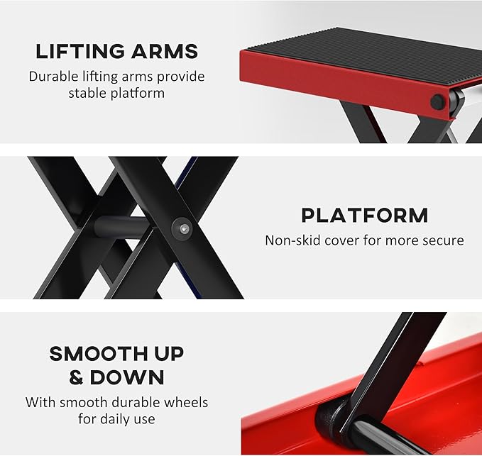 Steel body: The motorcycle lift table has a strong, durable build for lasting strength and reliability.