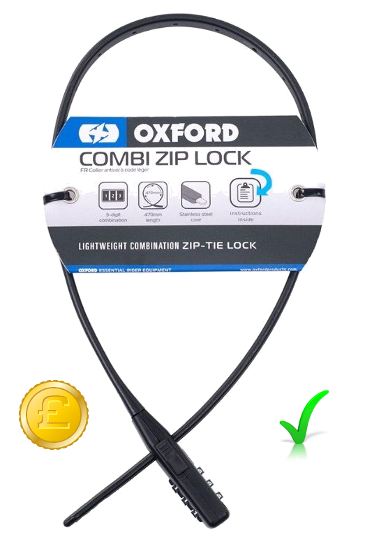 Overall Two-Wheels finds the Oxford Combi Zip Lock the best value for money. However all of these locks are valuable to own, and it may even be prudent to have two, as you never know when a lock might be needed, I have used a helmet lock to carry a spare helmet for a pillion in the past.