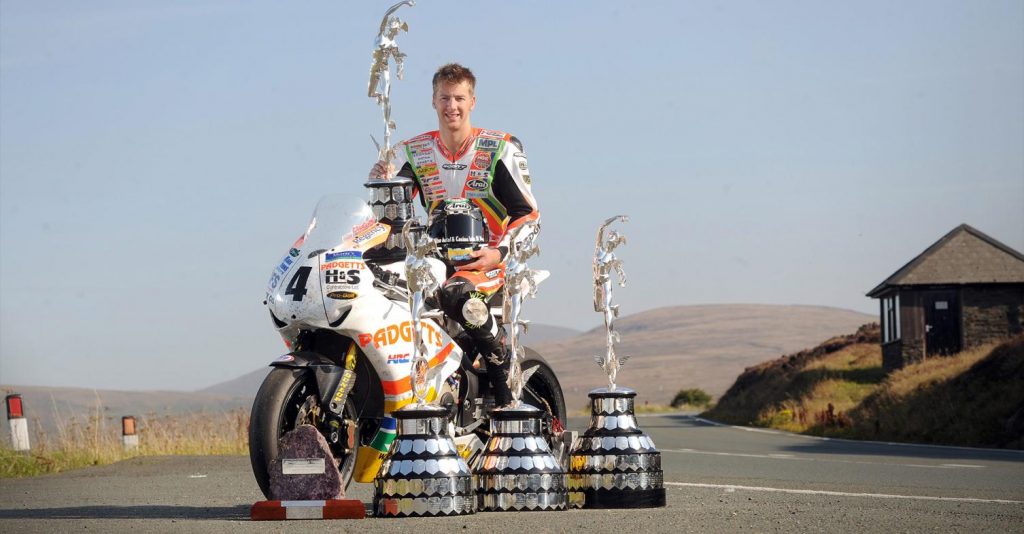 Hutchinson’s best racing year came in 2010, when he set a record for the most wins in a single Isle of Man TT festival in June, taking five solo victories after already winning the Supersport class at the North West 200 in Northern Ireland. In September, during a British Supersport round, he crashed in wet conditions shortly after the start, breaking his left leg badly after being struck by another rider’s machine. The injury required numerous surgeries and a long recovery. In 2012, he fractured the same leg again while riding an off-road bike during exhibition practice for a motorcycle show at the Excel Arena in London.