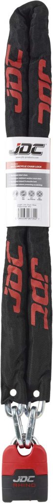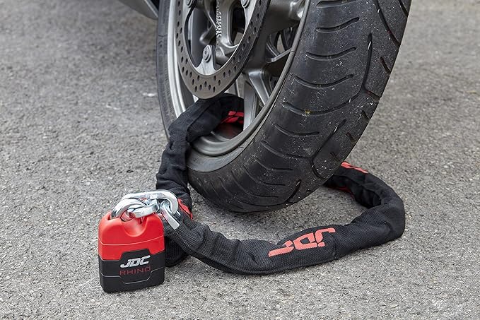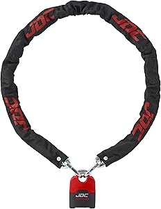 - Hardened steel chain with a black protective sleeve to prevent scratching your wheels.