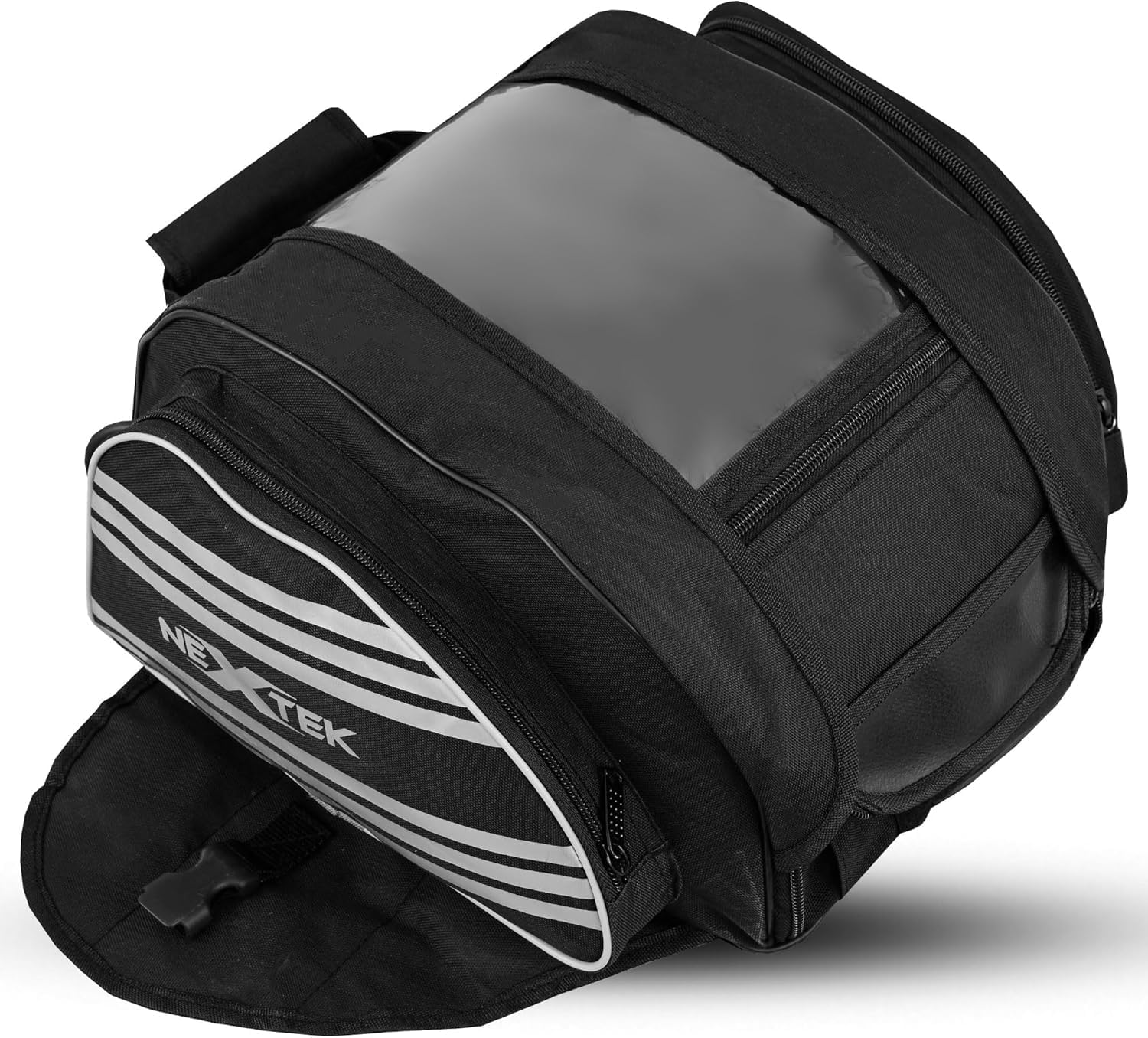 The Lima-Moto Nextec tank bag offers exceptional value for its price point. Despite being a budget-friendly option, it demonstrates solid craftsmanship, featuring one main compartment complemented by two smaller side pockets for added convenience and organization.