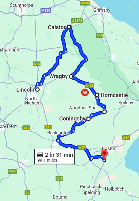 For a warm-up, the route heads north on the A46, away from Lincoln, past the Regional Police HQ, through Market Rasen and to the town of Caistor.