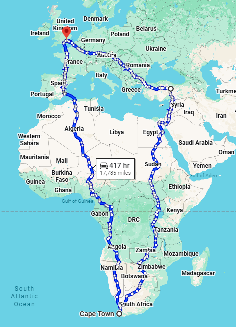You can save a few hundred miles by getting the ferry from UK to Spain or even to Africa, but where is the fun in that?