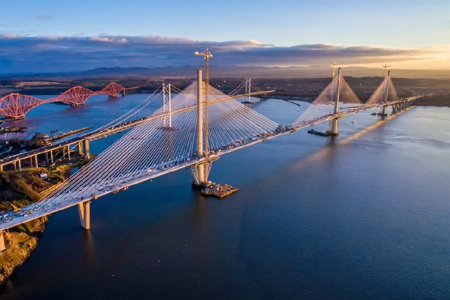 Formerly known as the Forth Replacement Crossing, Queensferry Crossing is the third bridge to be constructed across the Forth River in Scotland. The bridge was built between 2011 and 2017 alongside the existing Forth Road Bridge and the Forth Bridge. Alongside the Queensferry Crossing, approximately 4 kilometres of new connecting roads were built. The project also led to new and upgraded junctions at Ferrytoll in Fife, South Queensferry and Junction 1A on the M9.
