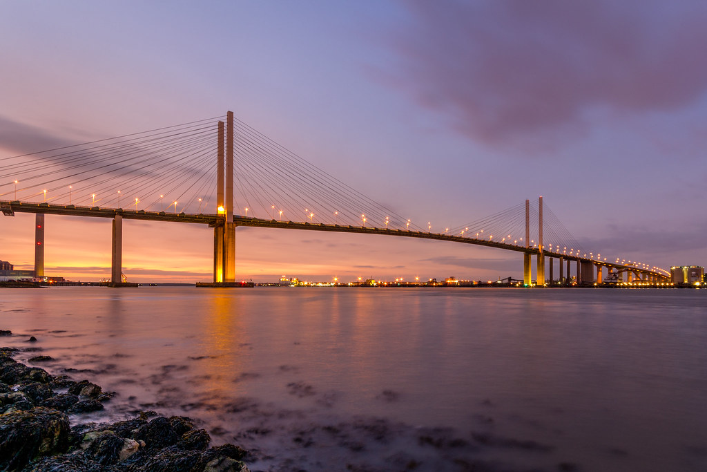 Queen Elizabeth II Bridge which is a part of the Dartford Crossing. The bridge carries the A282 road between Dartford in Kent to the south and Thurrock in Essex to the north. It is therefore a major crossway along the River Thames in England. The construction of the Queen Elizabeth II Bridge started back in the late 80s, mainly to reduce traffic on the Dartford Crossing tunnels. At the time of its launch in 1991, the bridge was the longest cable-stayed bridge in the world.