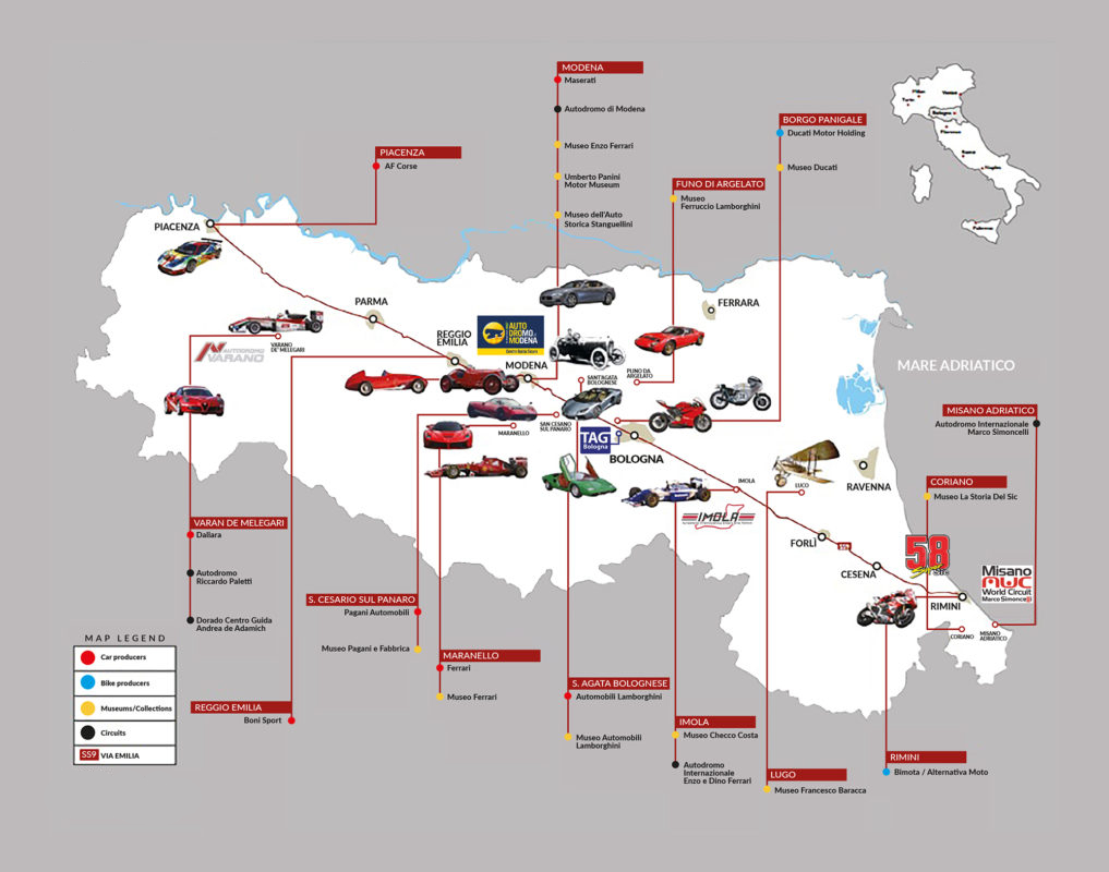 Despite being concentrated between Bologna and Modena, the passion for motors unites the entire Region: there are many private collections, museums and circuits.
