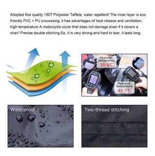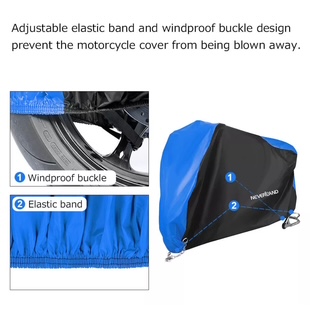 - Windproof Design: The lower front end of the cover features two lock holes for threading your motorcycle lock through, ensuring maximum security. An all-round elastic band guarantees a snug fit, while adjustable fastening straps with click fasteners prevent the cover from flapping in the wind.