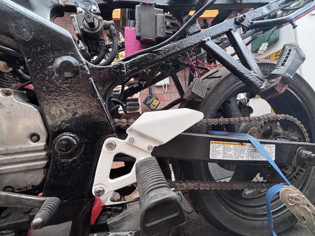 Recent work completed – mainly stripping off more and more parts of the bike! And in typical fashion, at least half of the fixings are rusted stuck, but attached to plastic so unable to use heat to ‘assist’, a perfect example is the rear ‘mud guard’ or undertray, it only has three fixings holding it on, the two on the rear were ground off, the one on the front had to be drilled out.