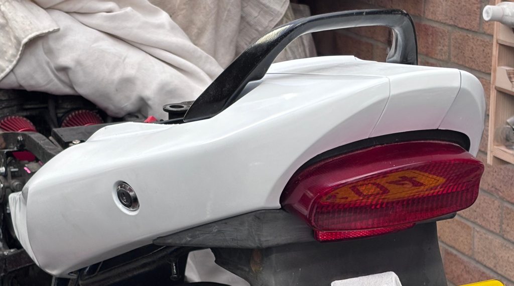 The rear plastics are back on, with the new reg plate mount and indicators (I have since moved the reg plate up a bit to cover the bracket more).
