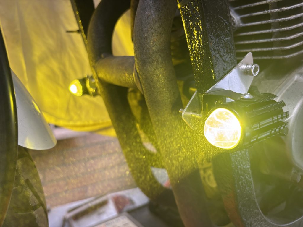 And to make this even sweeter, there are two settings on them, yellow lights are my running lights (no where near my indicators) and the white light turn’s on with my full beam, and yeah they are cr@p.
