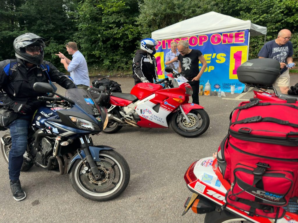 We pulled over and had a quick chat, he decided to limp it to pitstop 1 to see if he could fix the problem and I was going to carry on at my own speed. Nearing Exeter I needed fuel, so pulled over and had caught up with a few other bikes, so we ride in convoy to pitstop 1 (Cirencester services), we arrived at 08:25. At the pitstop we had a quick chat, visor clean, food and fuel then back on the road. Very quickly I realised that one of the fellow riders was wanting to increase the pace a little, a couple of nods to each other and off we went (this rider was Jenny Tinmouth, the fastest female at the IoM TT and BSB rider).