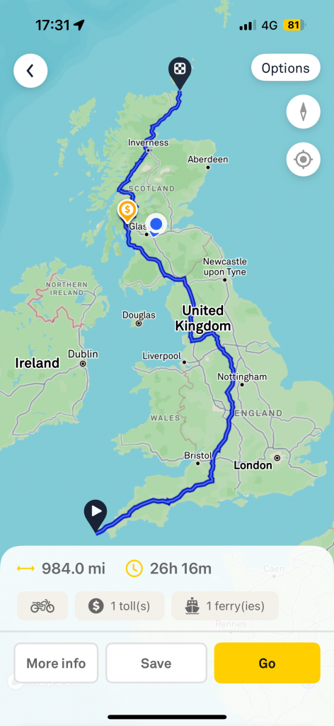 Then we were on our merry way aiming for to be at Pitstop five (Inverness Motorcycles for 23:15 ish). We were making good progress when we came across a road closure due to an accident in Spean Bridge (an hour from the ferry) which meant back tracking then a long diversion to Oban then Fort William with an extra fuel stop.
