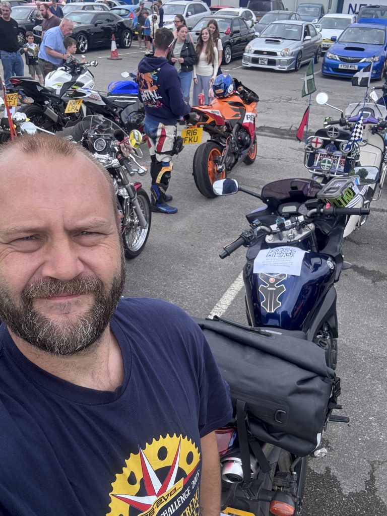 I had been invited to display the challenge bike at the Car and Bike show Family Fun Day at Radcliffe Football Club. This show has been going i for a couple of years now and is hosted by Andy’s Man Club.