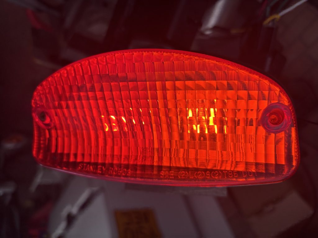 I will get round to removing the ‘beam benders’, painting the shroud and possibly even wire in the side lights (on this bike when the ignition is turned on the dipped beam is on), but I also didn’t want a hole where the bulbs should be so I left them in there but not wired in (the only time the side lights come on is when the bike is locked and in the ignition is in park).