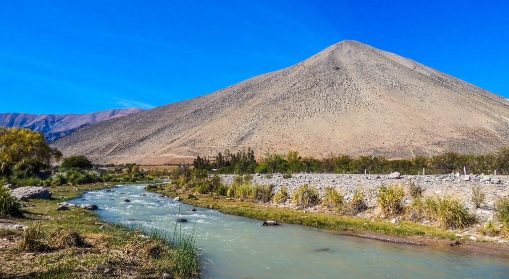 Elqui Valley – starts in the west Andes and flows into the Pacific Ocean near the Chilean city of La Serena. It flows through a wine and pisco producing area. Vicuña, the main town of the middle valley, was the home of Nobel Laureate poet Gabriela Mistral.