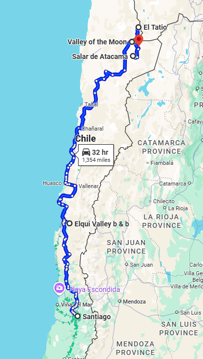 Salar de Atacama – located 34miles (55 km) south of San Pedro de Atacama, is the largest salt flat in Chile. It is surrounded by mountains and lacks drainage outlets. To the east, it is enclosed by the main chain of the Andes, while to the west lies a secondary mountain range called Cordillera de Domeyko. The landscape is dominated by imposing volcanoes such as Licancabur, Acamarachi, Aguas Calientes, and Láscar, the latter being one of Chile’s most active volcanoes. These volcanoes are situated along the eastern side of the Salar de Atacama, forming a north–south trending line that separates it from smaller endorheic basins.