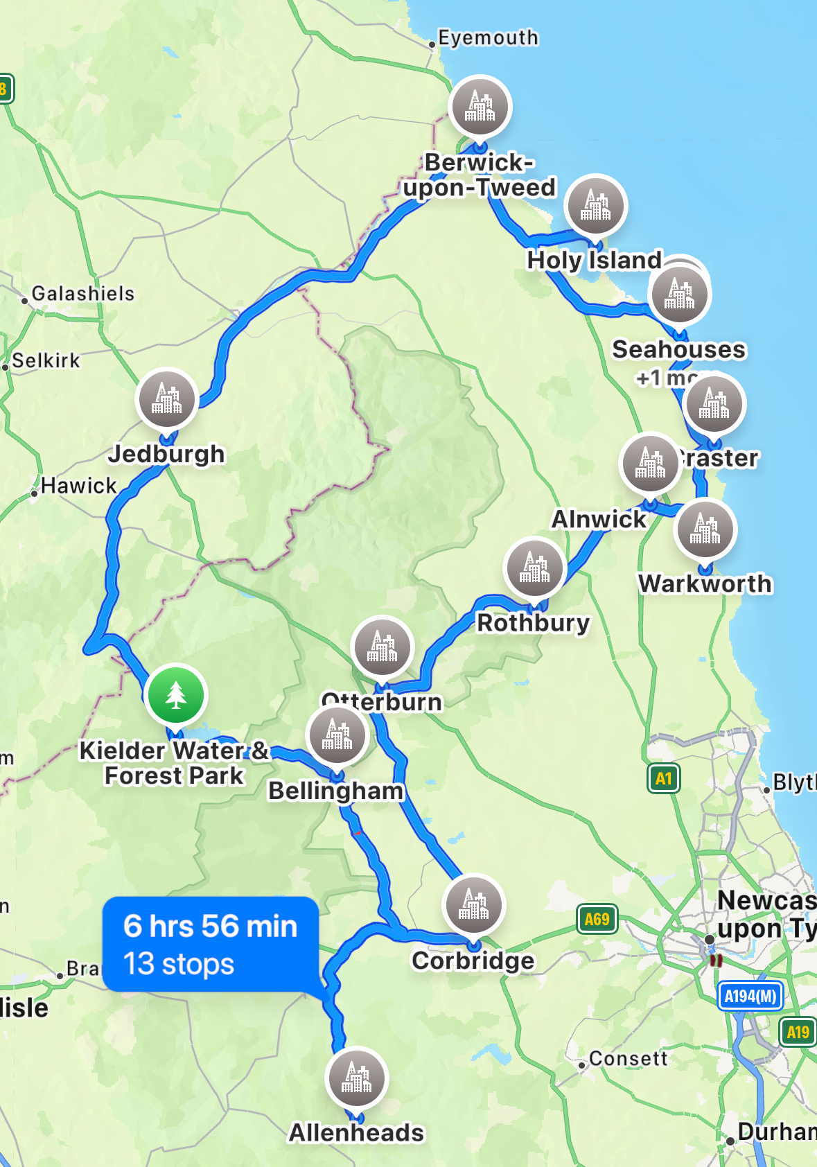 From Jedburgh to Kielder you pass Hadrian’s Wall which is a former defensive fortification of the Roman province of Britannia, begun in AD 122 in the reign of the Emperor Hadrian. Running from Wallsend on the River Tyne in the east to Bowness-on-Solway in the west of what is now northern England, it was a stone wall with large ditches in front and behind, stretching across the whole width of the island. Soldiers were garrisoned along the line of the wall in large forts, smaller milecastles, and intervening turrets.