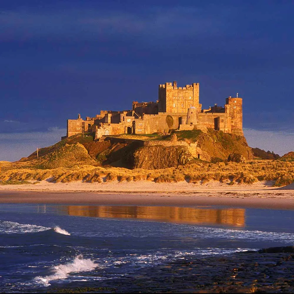 Bamburgh is a village and civil parish on the coast of Northumberland, England. Bamburgh was the centre of an independent north Northumbrian territory between 867 and 954. Bamburgh Castle was built by the Normans on the site of an Anglo-Saxon fort. The extensive beach by the village was awarded the Blue Flag rural beach award in 2005. The Bamburgh Dunes, a Site of Special Scientific Interest, stand behind the beach. Bamburgh is popular with holidaymakers.