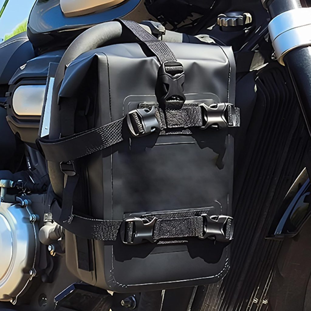 - Strong Waterproof Ability: Motorcycle crash bar bags offer robust waterproofing to shield your gear from rain and dampness, maintaining the safety and usability of stored items during long trips or challenging weather conditions without added hassle