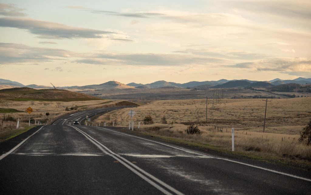 Starting in Port Macquarie, the road winds through the mountains and crosses the Great Divide. It becomes flat when you leave the forest and enter the open New England plateau.