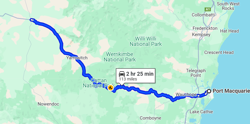 Port Macquarie to Walcha, New South Wales.