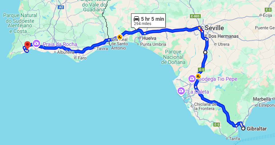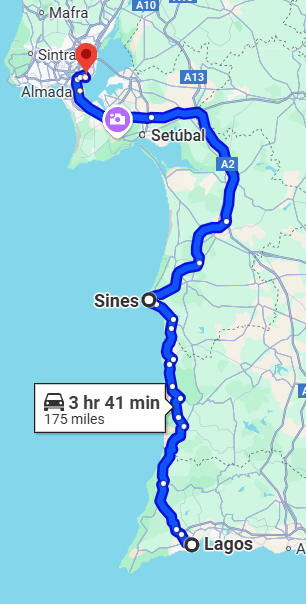 Lagos, Sines, Setubal, Almada and Lisbon.