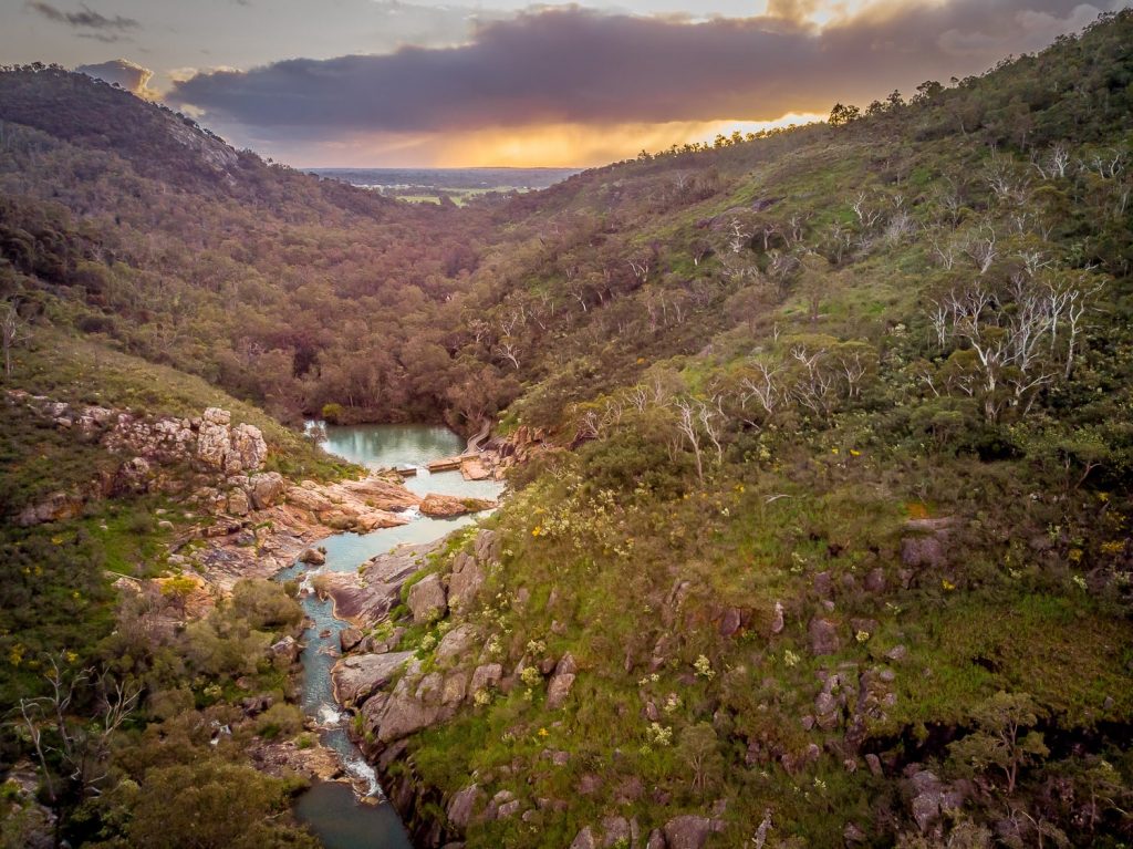Dwellingup State Forest covers an extensive area of the Darling Range from north of Dwellingup all the way to Harvey. A one-and-a-half-hour drive south of Perth, it contains some magnificent jarrah/marri forest including many areas of impressively tall and ancient trees. Tracks, trails and back roads through the forest lead to lakes and dams, picnic areas, and campgrounds With its close proximity to Perth, Dwellingup is an ideal destination for group accommodation, events and retreats.
