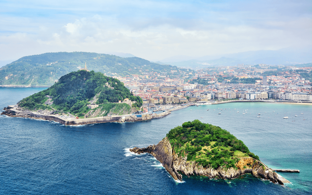 Donostia-San Sebastian is a city and municipality located in the Basque Autonomous Community, Spain. It lies on the coast of the Bay of Biscay, 12 miles (20 km) from the France–Spain border. The capital city of the province of Gipuzkoa