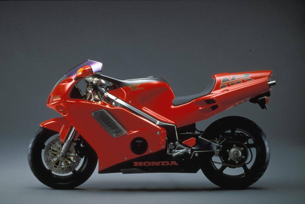 Honda’s NR750 is one of those bikes you’ll never forget once you see it in person. Featuring a 747 cc oval-piston V-4 engine with an incredible 32 valves, it represented the peak of the NR program, which began in 1979 with the NR500 500cc Grand Prix racer.
