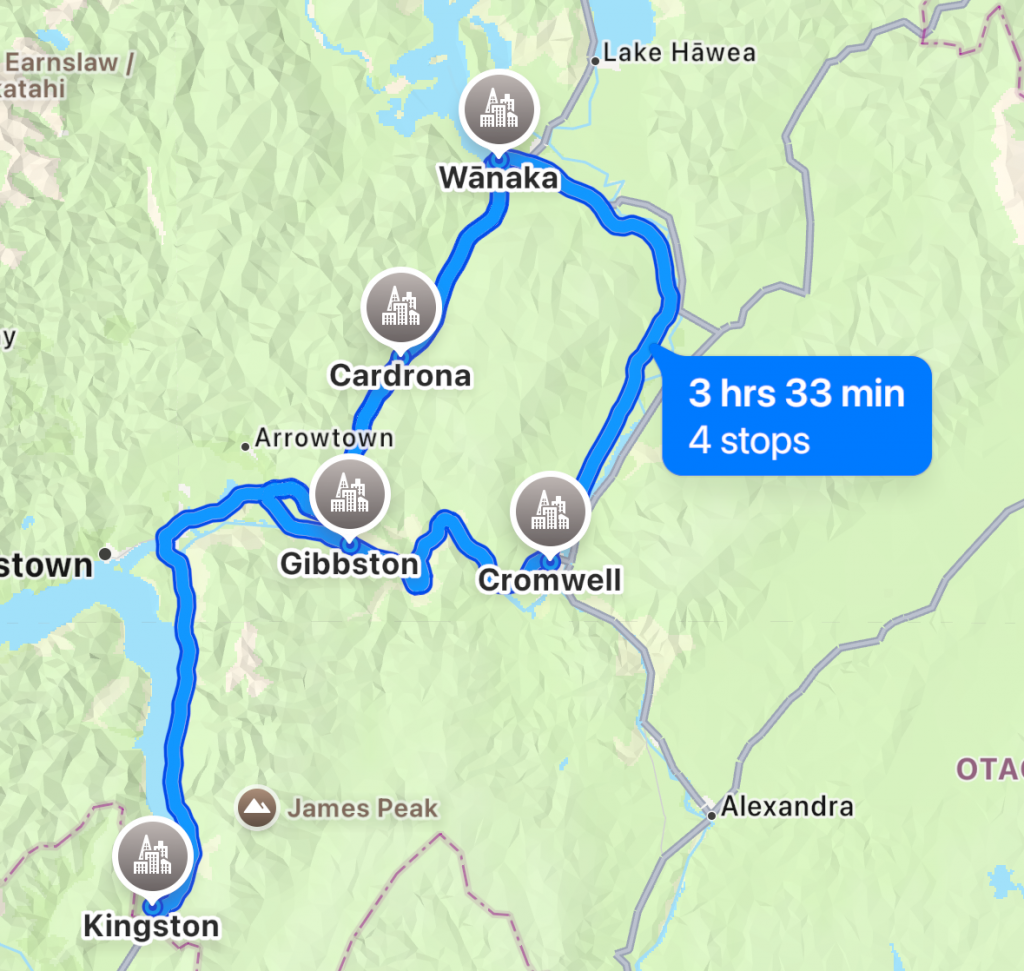Head off from Wanaka, stop at the famous Cardrona Hotel. Continue on over the Crown Range Rd, New Zealand’s highest motorable road at 1121 metres (3677 ft), be warned it can get cold up there, even in summer.