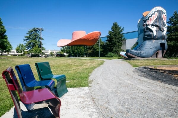 Just a few neighborhoods away in Seattle’s Georgetown area, you’ll spot a giant cowboy hat and two massive boots standing in a park like they belong to a 50-foot-tall rancher.