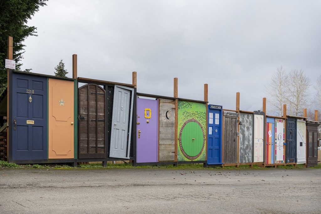 Hop on a ferry to Vashon Island and you’ll find a long wooden fence made entirely out of old doors with some painted, some peeling, and all totally random.