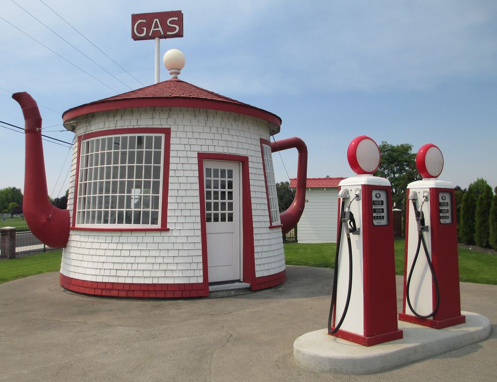 The Teapot Dome Service Station was built in 1922 as a cheeky nod to the Teapot Dome Scandal, and yep, it actually pumped gas for decades.