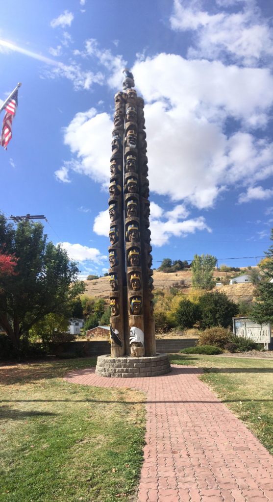 Next up in Colfax, there’s a giant wooden totem pole that tells the story of an old guys’ football rematch.