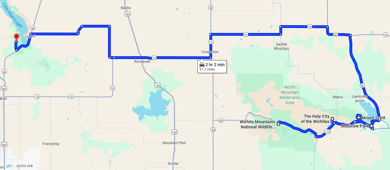 The Wichita Mountains, named after the tribe that inhabited the area centuries ago, were uplifted between 290 and 330 million years ago. The highest accessible peak which is located within the reserve is Mount Scott at 2,464 ft (751 m). The summit is drivable by means of a 3-mile-long road, and offers views of the surrounding landscape.