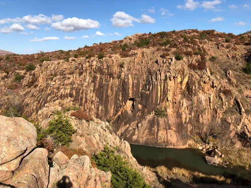 Quartz Mountain State Park is located in southwest Oklahoma at the western end of the Wichita Mountains, 13 miles (21 km) east of Mangum, Oklahoma and 20 miles (32 km) north of Altus, Oklahoma.