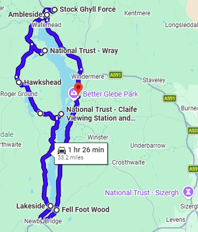 - Start: Anywhere on loop (recommend Bowness on Windermere)